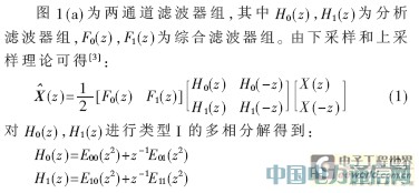 本文從抽樣率變換和濾波器組基本理論出發,通過多抽樣率系統的恒等變換[3,4],推導了兩通道濾波器組無混疊的條件。對傳統ΣΔ調制器結構進行等效變換,得到兩通道時間交織ΣΔ調制器的系統結構,理論上運算速度提高到單通道的2倍[5]。采用SIMULINK對二階兩通道時間交織ΣΔ調制器進行了建模仿真。