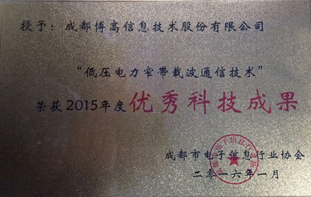 專網通信世界-中國電力通信網訊:近日,在成都市電子信息行業協會舉辦的2015年度“成都電子信息優秀企業及優秀科技成果”評選中,成都博高榮獲“2015年度優秀創新企業”榮譽稱號,“低壓電力窄帶載波通信技術”榮獲“2015年度優秀科技成果”榮譽稱號。