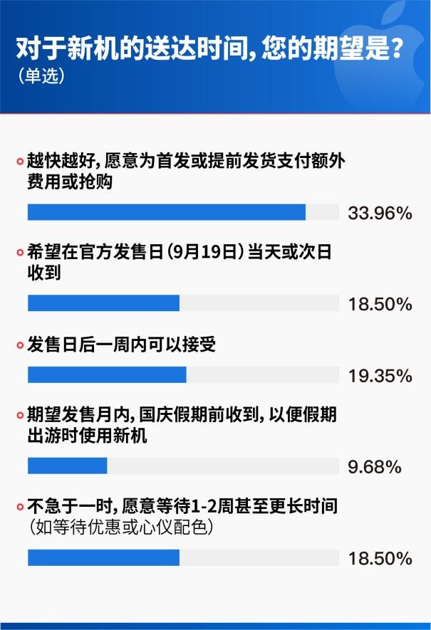 新品首發時,用戶對送達時間期待迫切,33.96%用戶希望 “越快越好,愿付額外費用”,18.5%期望發售日當天或次日收到。京東物流首銷日 “小時級” 甚至 “分鐘級” 送達,完美契合需求,“配送極速,遠超預期” 成為38.83%用戶對京東的核心滿意點,這背后是京東即時零售運營的有力支撐。截至9月19日中午12點,全國超3萬名用戶簽收京東購買的 iPhone 17系列新品,直觀體現了京東的供應鏈與物流優勢。