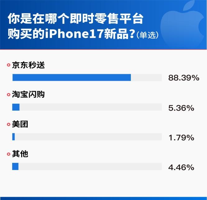 總體而言,iPhone 17首銷線上主導格局清晰,京東以規模現貨化解用戶 “能否買到” 的焦慮,配合高效的供應鏈和物流體系以及周到的服務,成為用戶購機首選。這場首銷既體現蘋果產品力,也凸顯渠道平臺在滿足消費者理性需求、提升消費體驗中的關鍵作用。從調研結果和消費數據中均可看出,買iPhone新品上京東已成為大多數用戶的消費選擇。