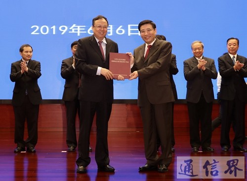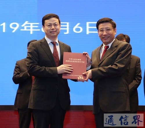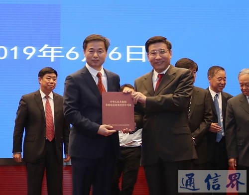 工業(yè)和信息化部部長苗圩同志出席頒證會并頒發(fā)許可證。工業(yè)和信息化部黨組成員、總工程師張峰同志主持會議,國家發(fā)展改革委相關(guān)負(fù)責(zé)同志及中國電信、中國移動、中國聯(lián)通、中國廣電、中國鐵塔主要負(fù)責(zé)同志出席會議。